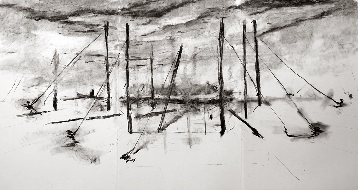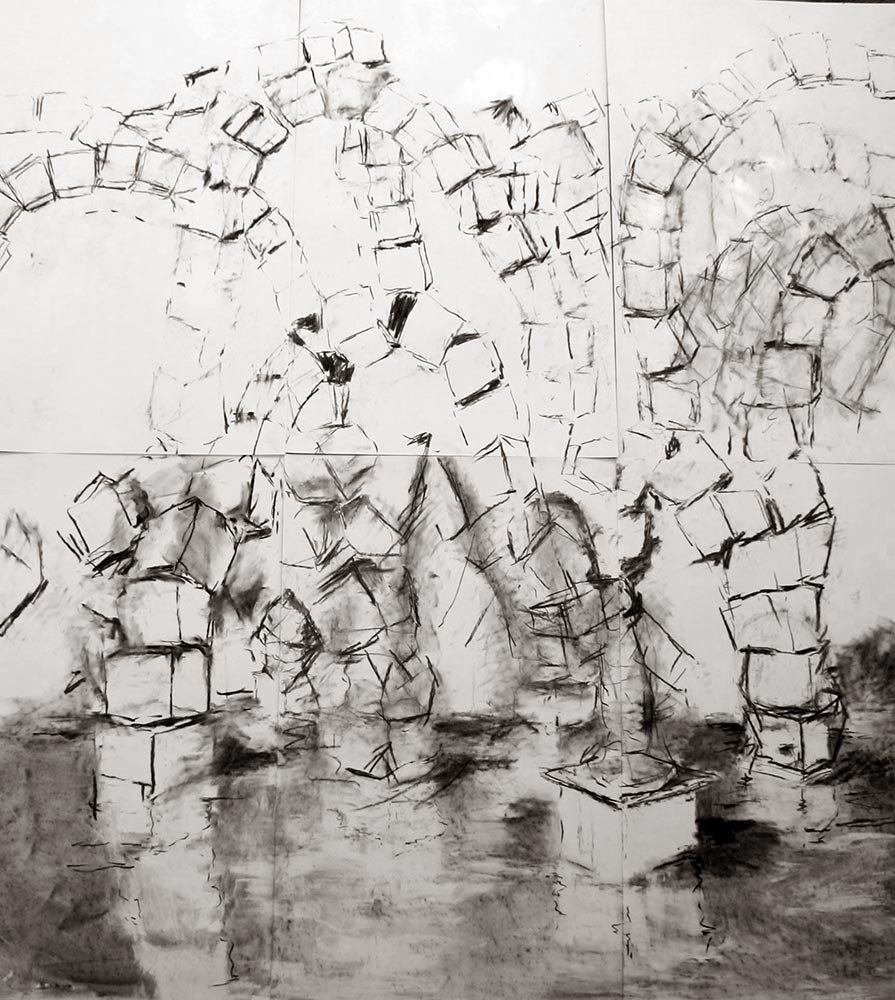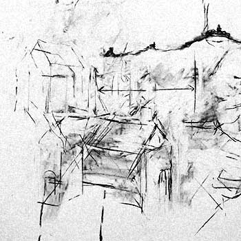 A visual conversation of working on separate drawings and then alternating after a given time. Concession was given to enhance or completely erase each other’s drawing, the process continued, switching back and forth, until the drawings appeared 'finished'.