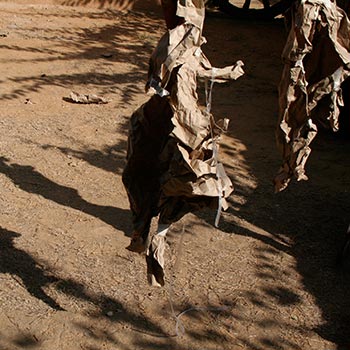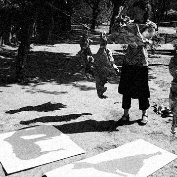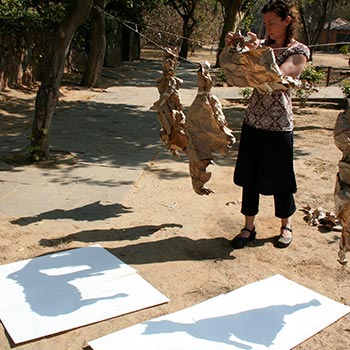The collaborative dialogue began with the manipulation of brown paper rescued from a burn pile, and hung from string to create recognizable images.