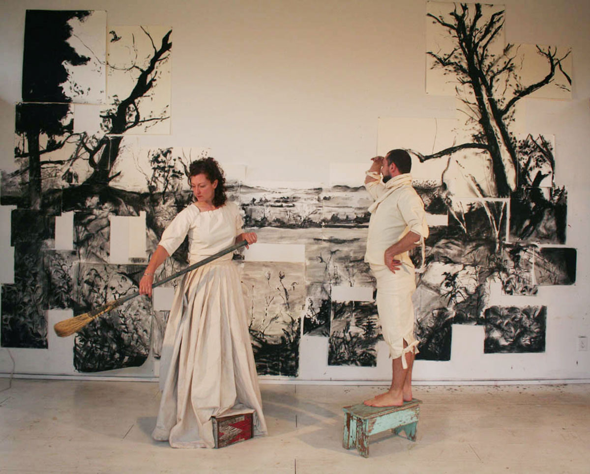 Stage Charcoal, paper, costumes, wire